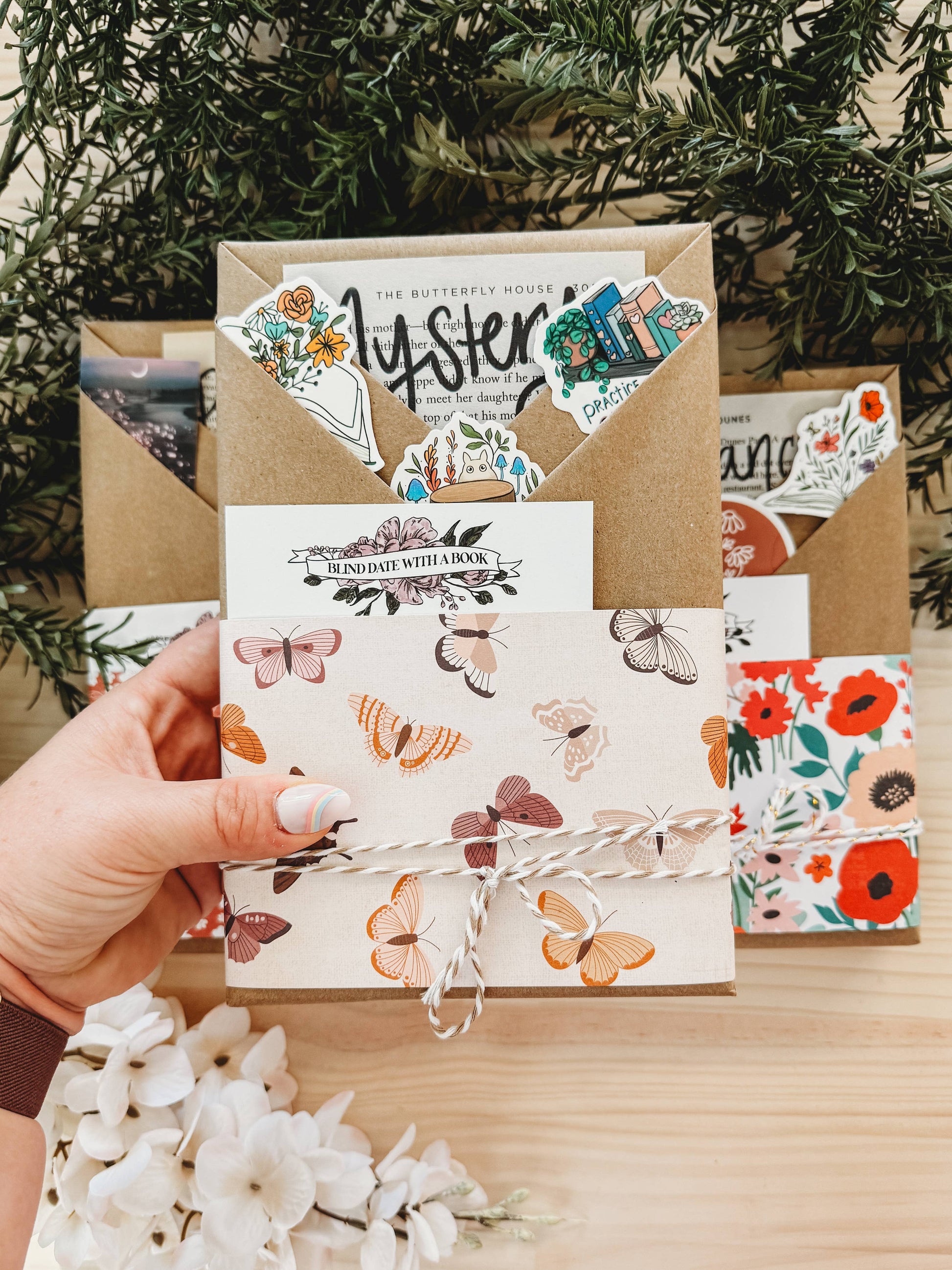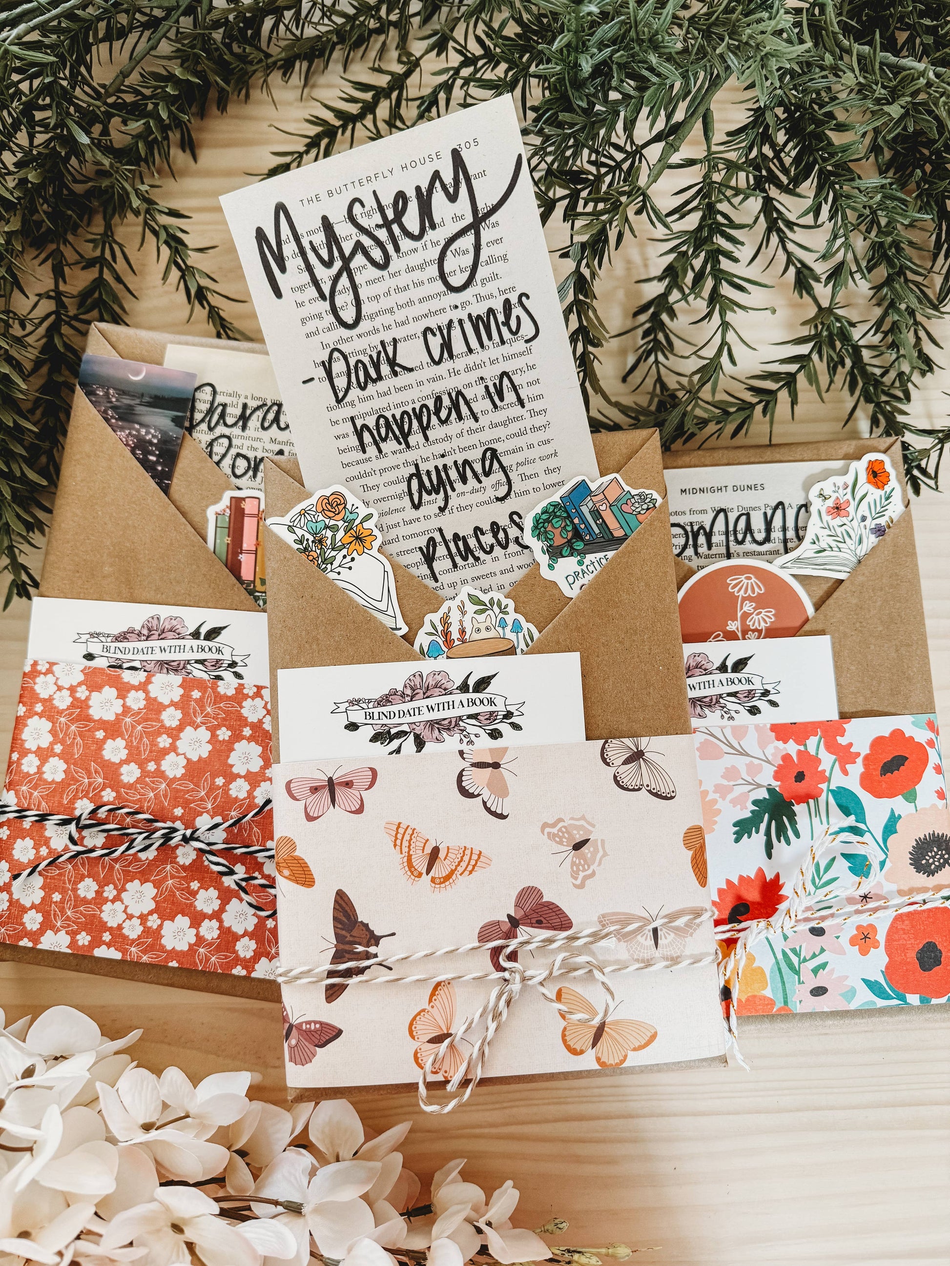 Looking for a surprise read? Try a Blind Date with a Book! This package comes with stickers, a piece of book paper with the genre and a little about the book to get you excited to read it, a "Blind Date with a Book" info card, and a pretty wrapping and tie.