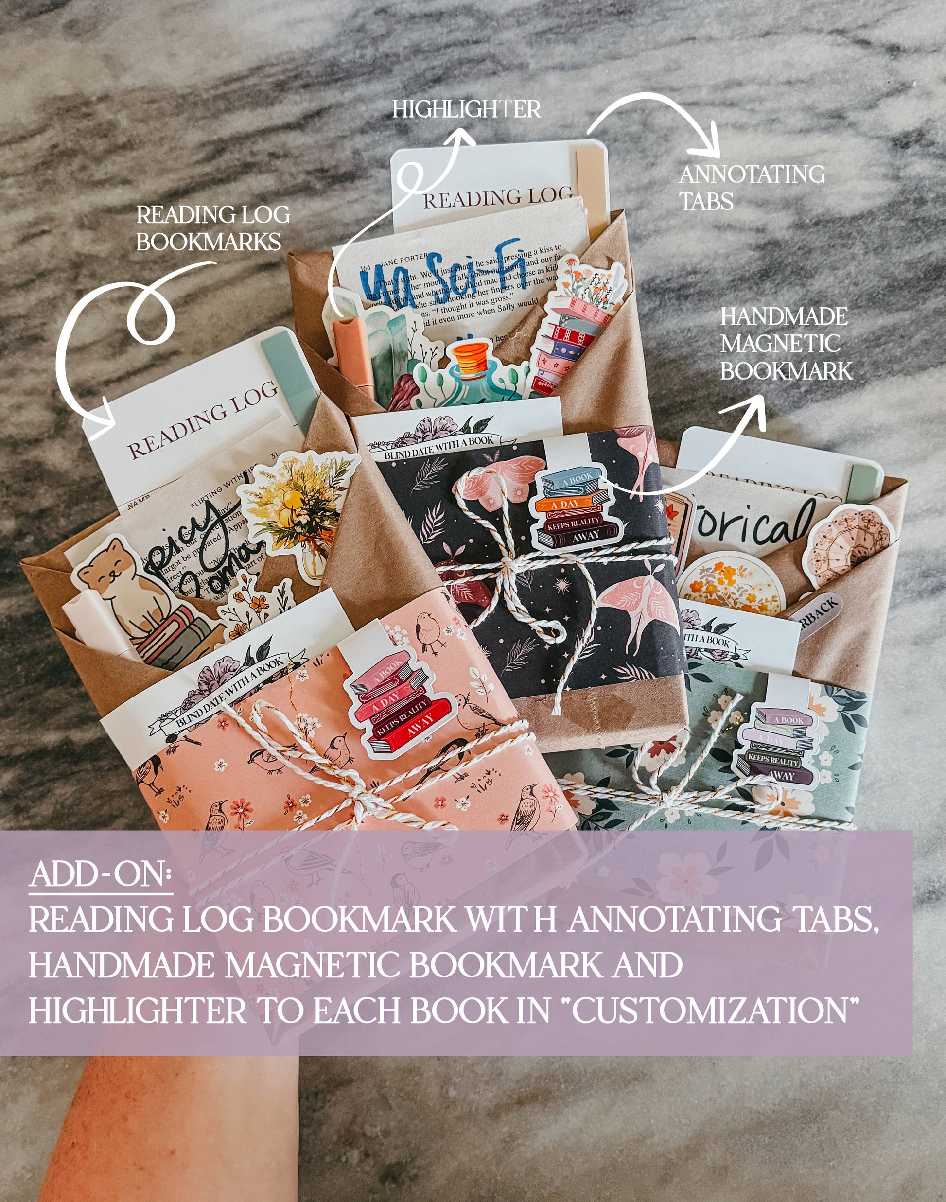 (You are able to add-on our additional Magnetic bookmarks, reading log bookmarks, annotating tabs and highlighters for an additional fee!)