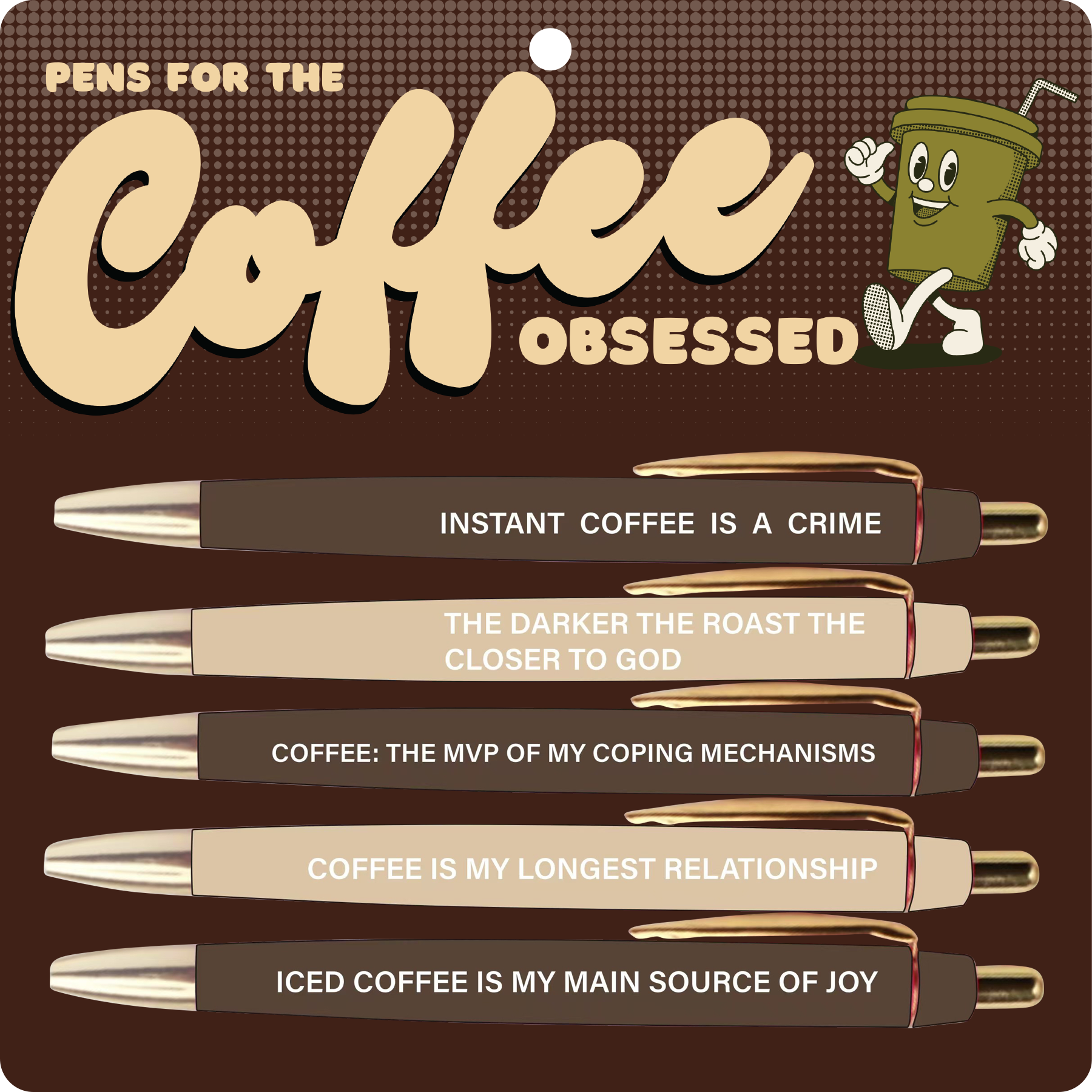 Coffee Lover Pen Set – Pack of 5 Ballpoint Pens